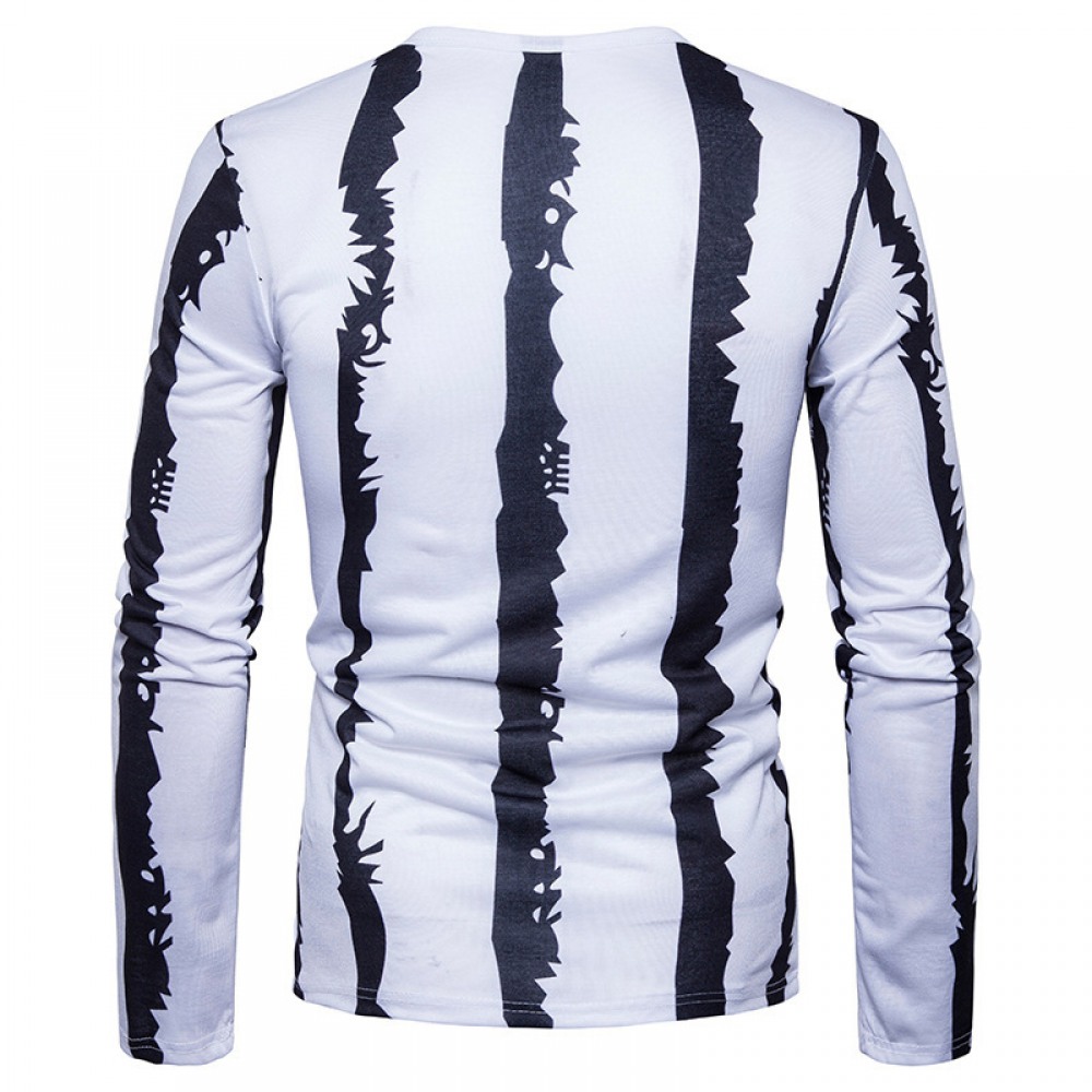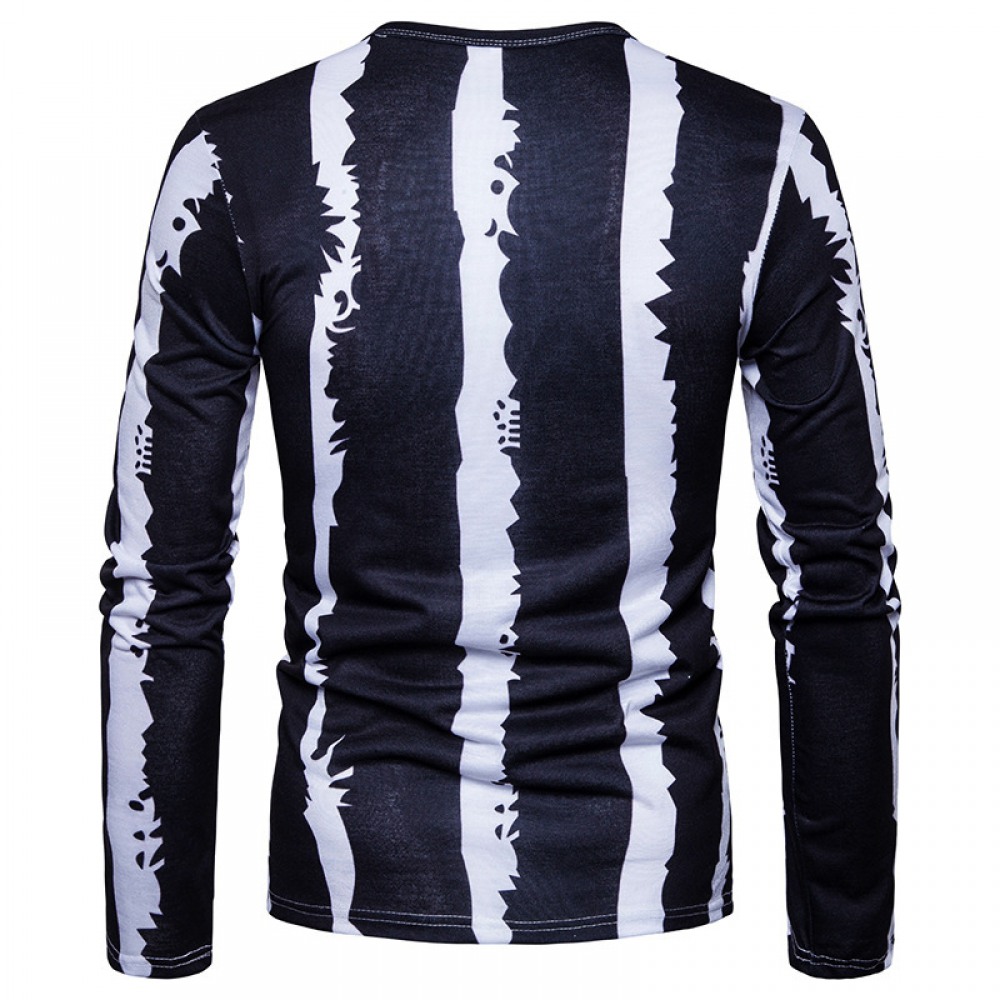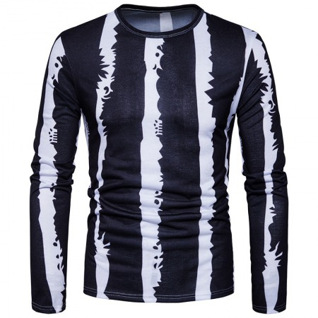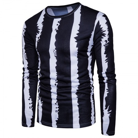 Black and White Strip Stitching Design Men's Casual Fashion T-Shirt
