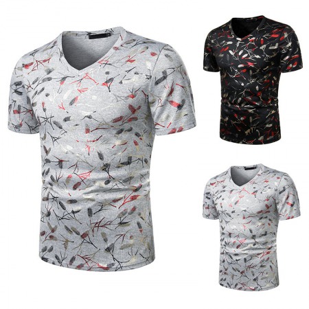 Summer Men's Nightclub Bar Fashion Casual Short-Sleeved Printed T-Shirt