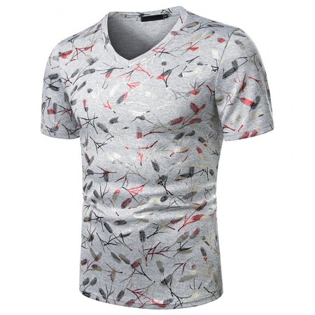 Men's Fashion Summer Simple Gold Short-Sleeved Round Neck Bright Printed Men's T-Shirt